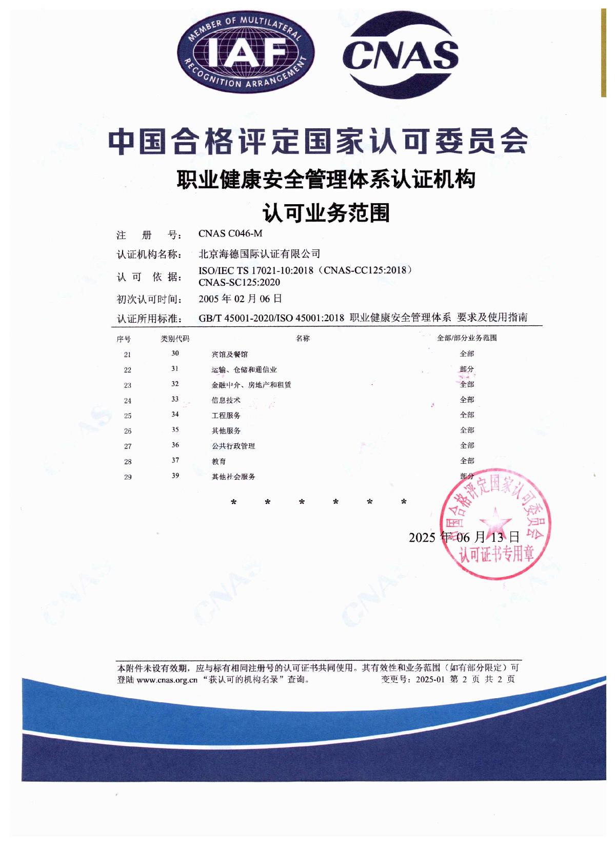 二、CNAS认可证书(注册号:CNAS C046-M)