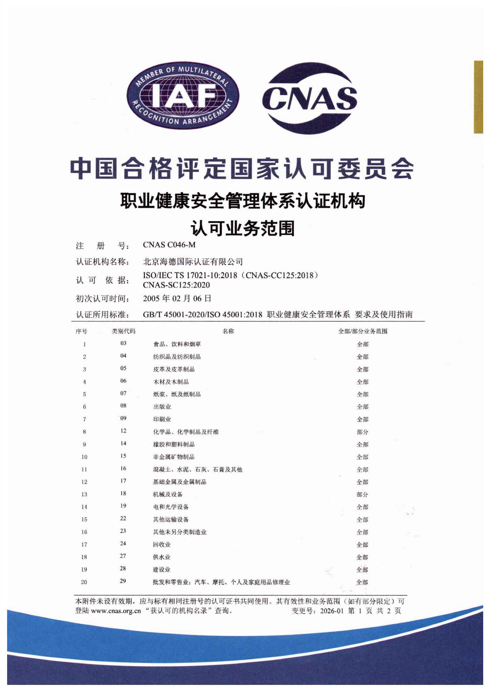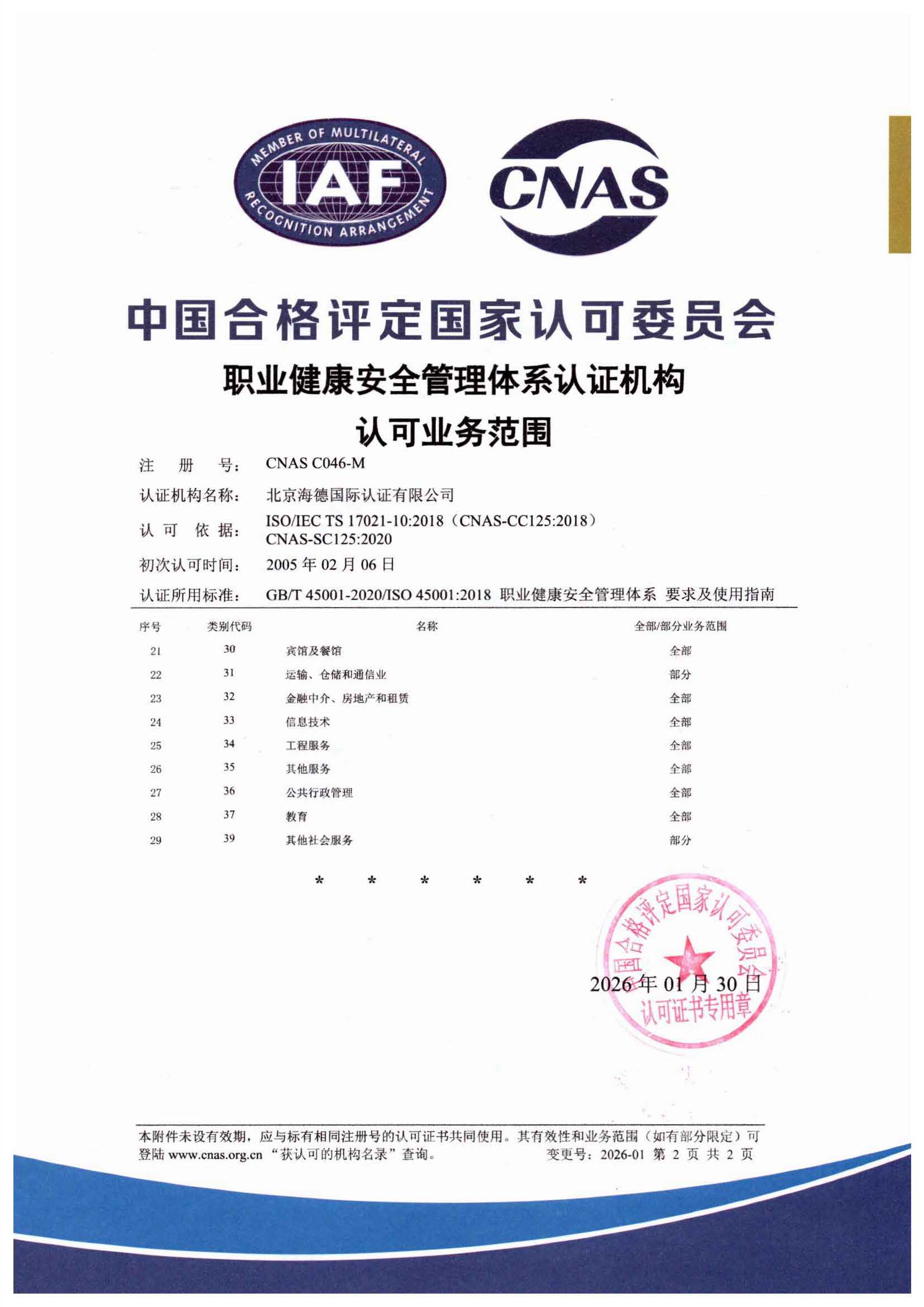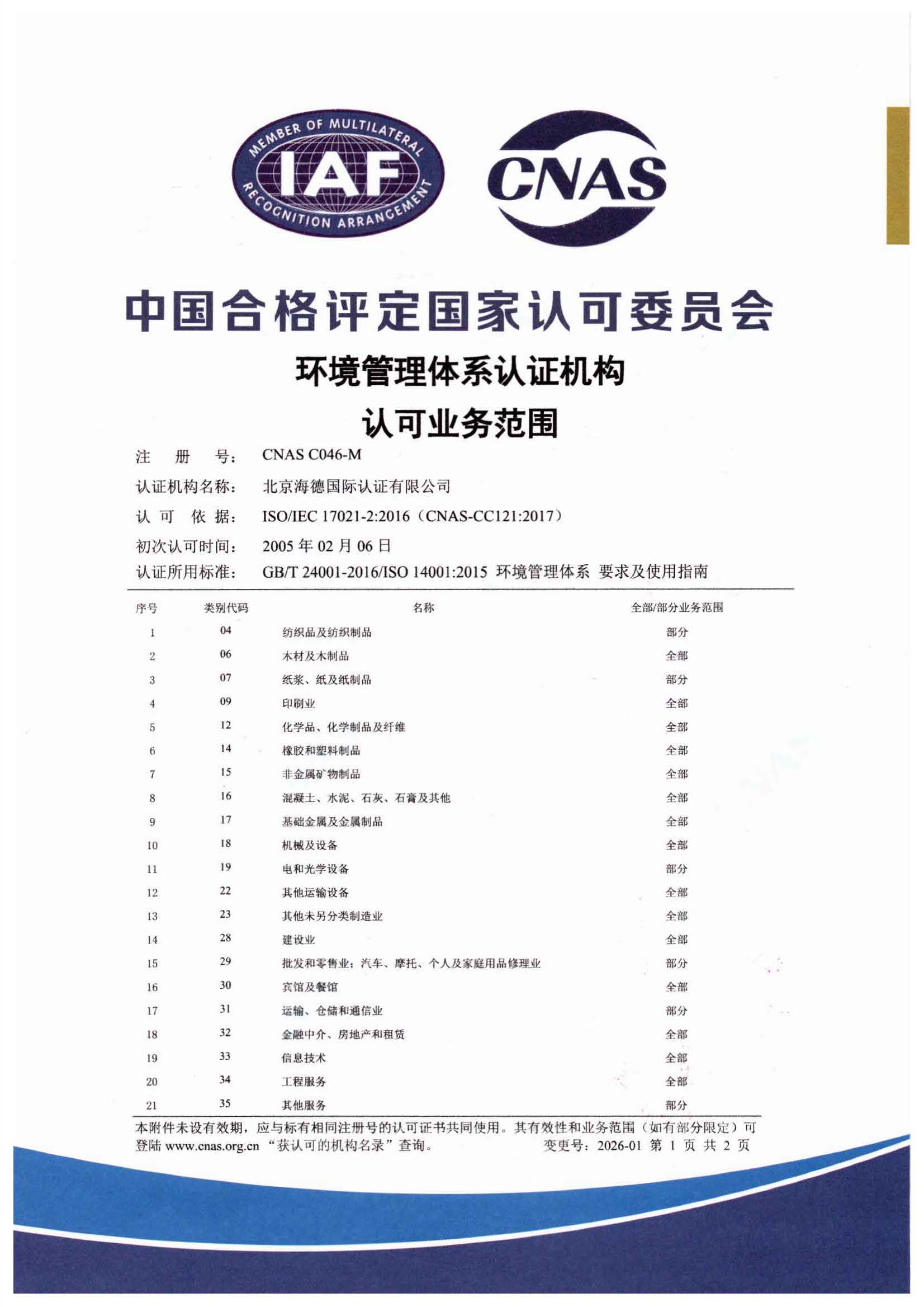 二、CNAS认可证书(注册号:CNAS C046-M)