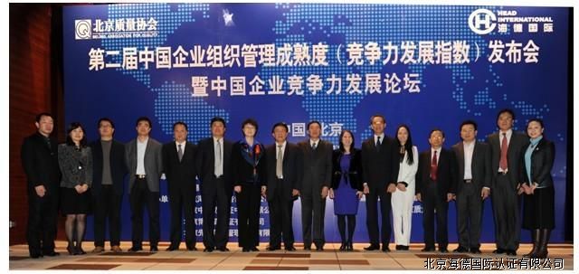 由北京市质量协会、海德国际共同主办的“第二届中国企业组织管理成熟度(竞争力发展指数)发布会暨中国企业竞争力发展论坛于2011年12月18日在北京隆重举行,会上公布了由海德国际研发的拥有自主知识产权的2011-2012年度中国企业管理成熟度(竞争力发展指数)报告和 2011-2012年度中国企业领导力LPI发展报告,并详细发布了基于此开展的系列增值审核和深化服务的成果。
