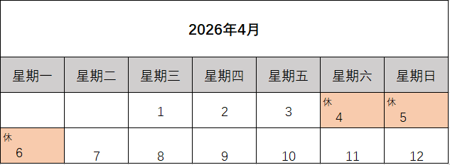 根据国务院办公厅通知精神结合本公司实际,2026年清明节放假时间如下: